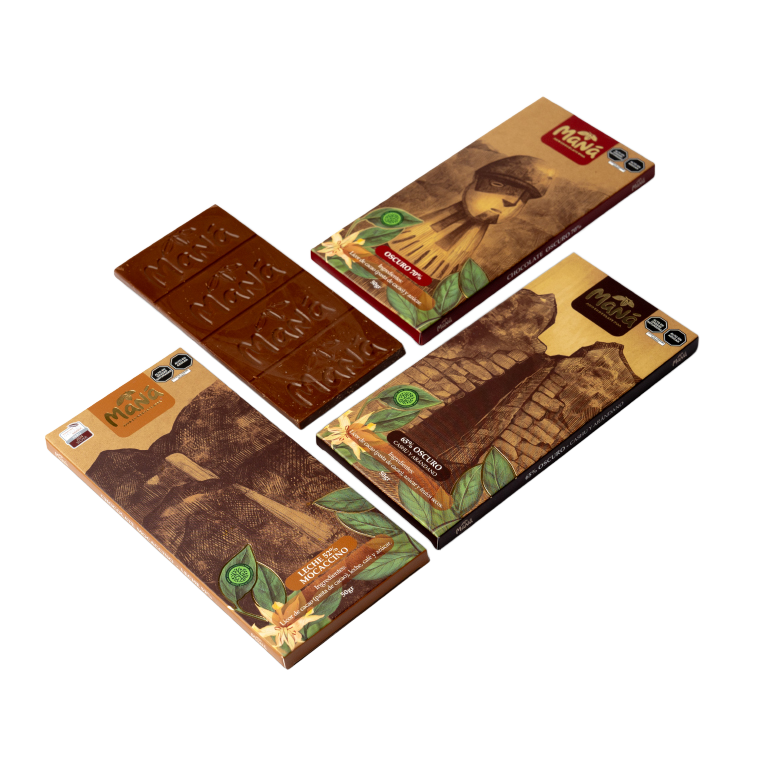 Tabletas de chocolate con empaque representativo a los principales atractivos de la región Amazonas.